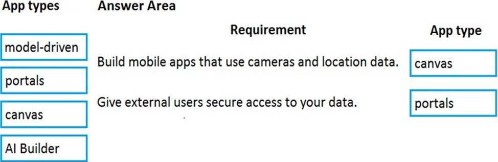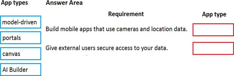 You need to recommend the appropriate types of Power Apps to meet the company’s requirements.