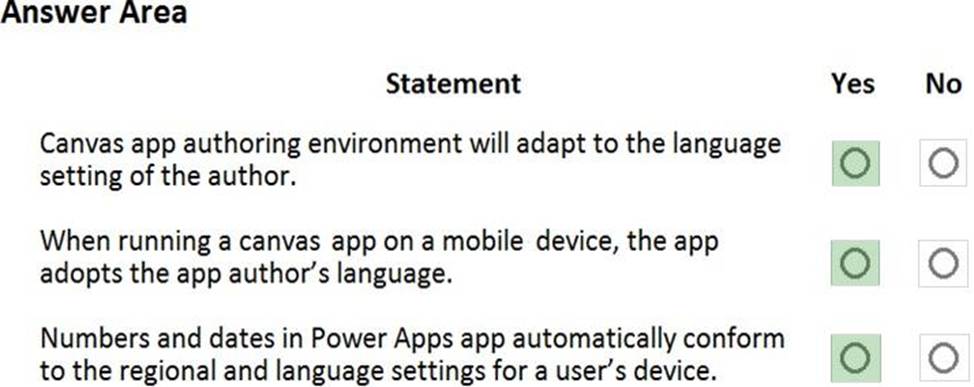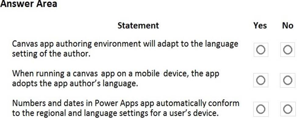 For each of the following statements, select Yes if the statement is true. Otherwise, select No. NOTE: Each correct selection is worth one point.