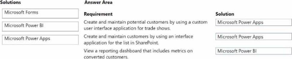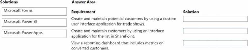 The company uses Microsoft Excel to enter potential customer information from trade shows. When potential customers create their first sale with the company, a Microsoft SharePoint list records them as converted to a customer.