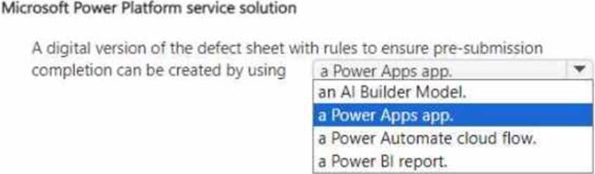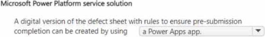 You need to recommend a Microsoft Power Platform service that fulfills the manufacturer requirements.