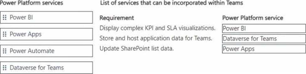 You need to explain how each Power Platform service can be used within Teams.