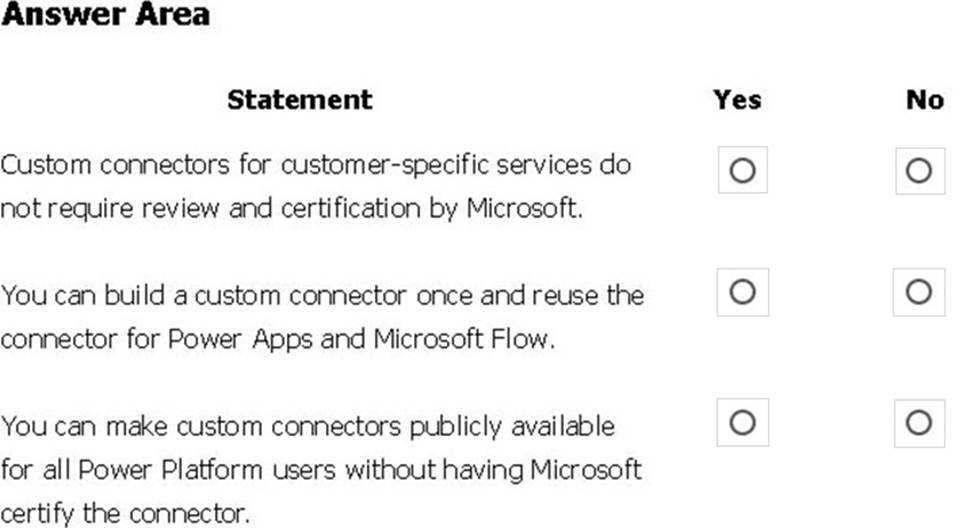 For each of the following statements, select Yes if the statement is true. Otherwise, select No. NOTE: Each correct selection is worth one point.