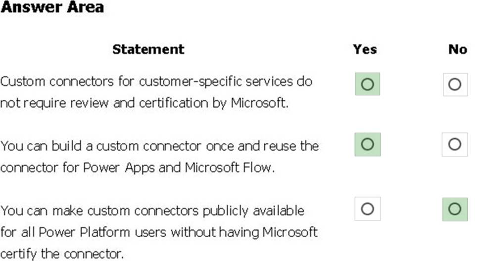 A company plans to use Power Apps to connect to a series of custom services. There are no connectors available for the custom services.