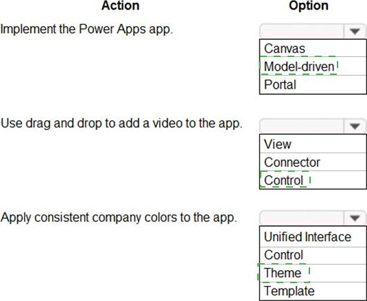 Which objects should you use? To answer, select the appropriate options in the answer area. NOTE: Each correct selection is worth one point.