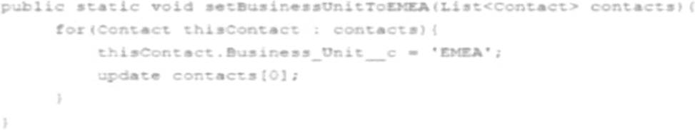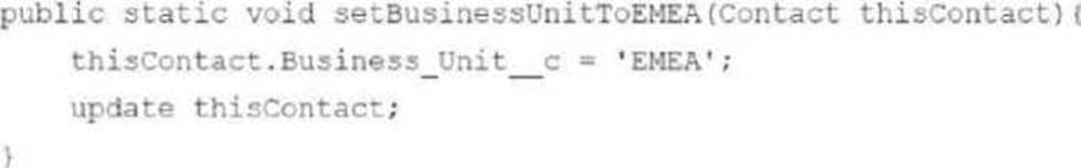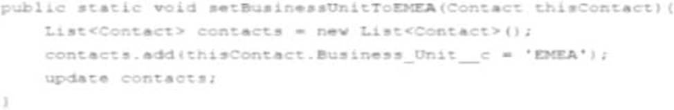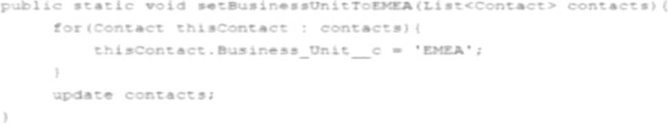 The following Apex method is part of the ContactService class that is called from a trigger: