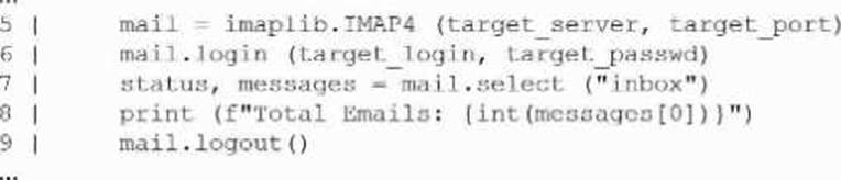 A penetration tester creates the following Python script that can be used to enumerate information about email accounts on a target mail server: