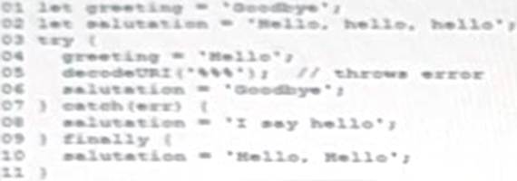 What are the values of greeting and salutation once code completes?