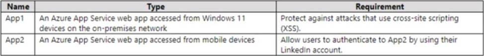 You plan to deploy the Azure applications shown in the following table.
