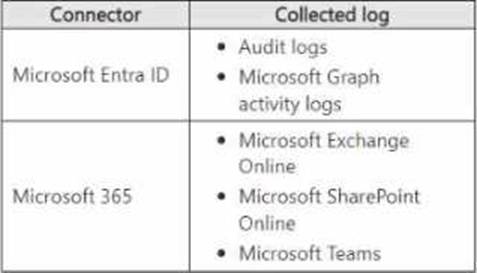 Microsoft Sentinel connectors are configured as shown in the following table.
