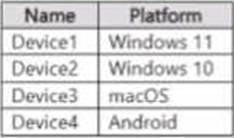 You have a Microsoft 36S ES subscription that contains the devices shown in the following table.