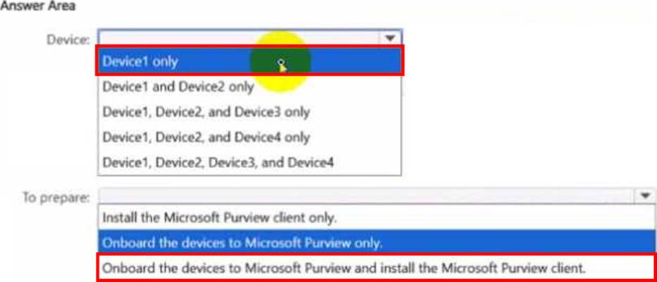 - D . Onboard the devices to Microsoft Purview.