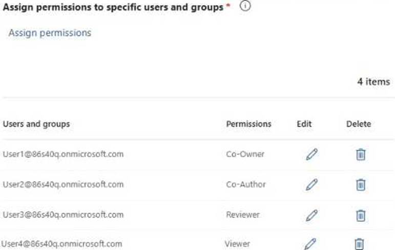 To File1, you apply a sensitivity label that has the permissions shown in the following exhibit.