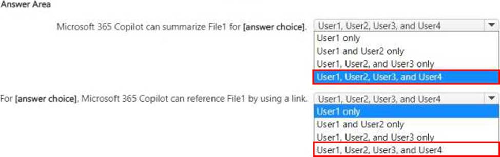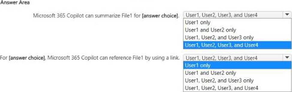 You have a Microsoft 365 E5 subscription that contains four users named User1, User2, User3, and User4 and a file named File1.docx.