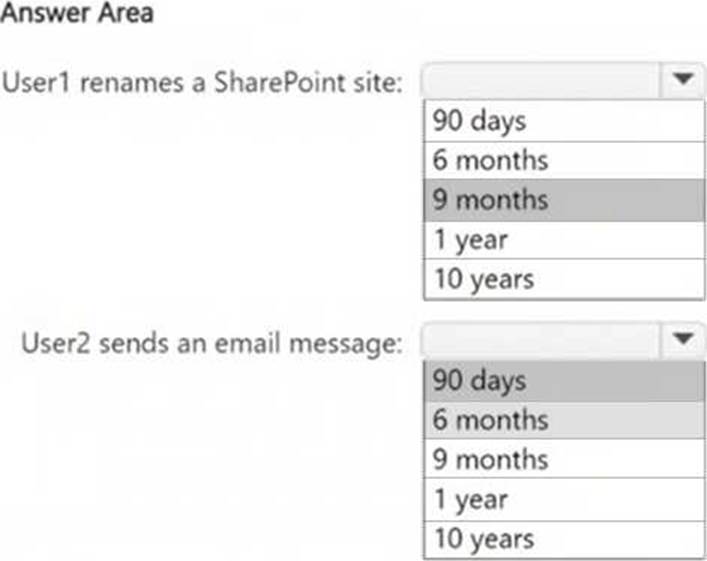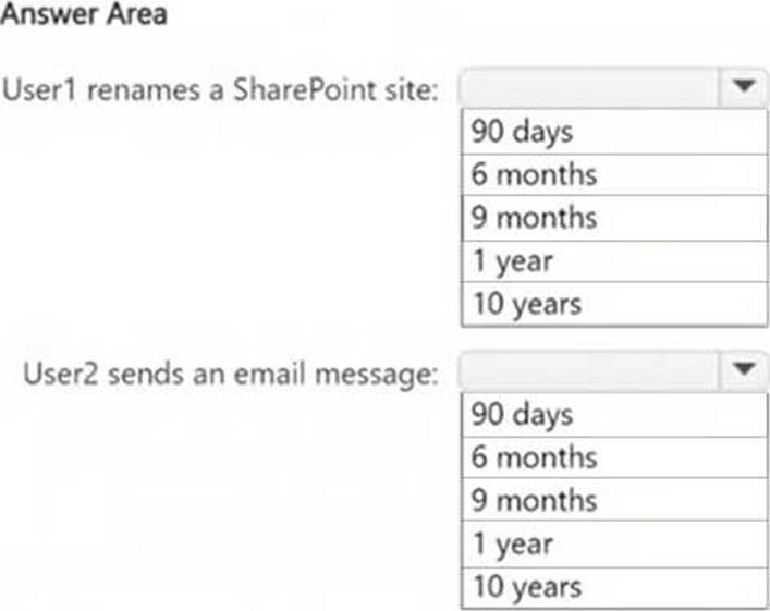 How long will the audit log records be retained for each action? To answer, select the appropriate options in the answer area. NOTE: Each correct selection is worth one point.