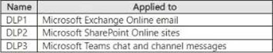 You have a Microsoft 365 E5 subscription that contains the data loss prevention (DLP) policies shown in the following table.