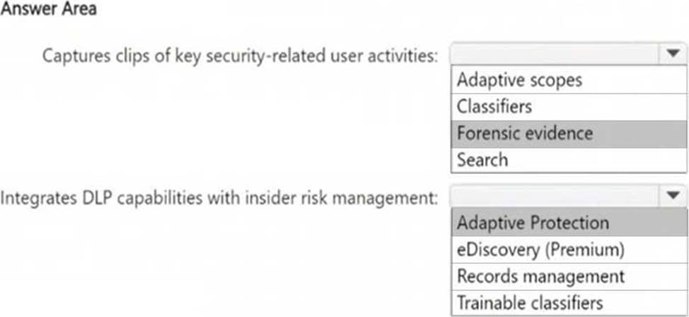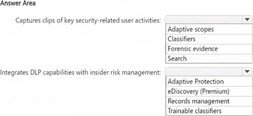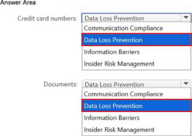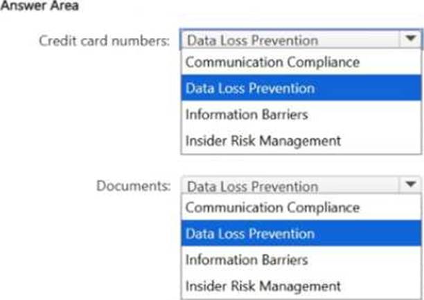 Which Microsoft Purview solution should you use for each requirement? To answer, select the appropriate options in the answer area. NOTE: Each correct selection is worth one point.
