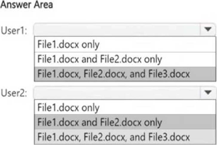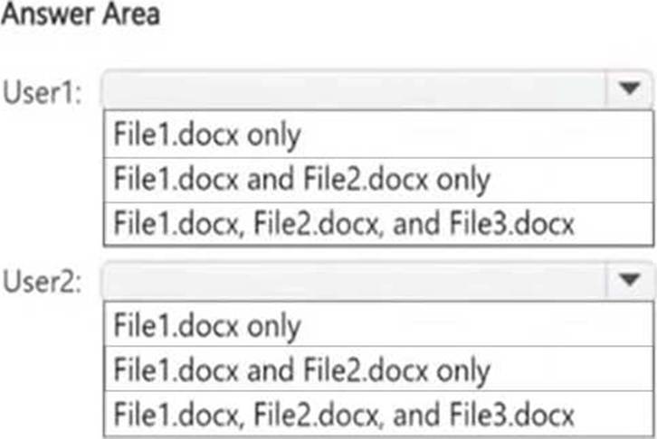 Which files can User1 and User2 open? To answer, select the appropriate options in the answer area. NOTE: Each correct selection is worth one point.