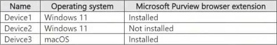 The subscription contains devices that are onboarded to Microsoft Purview and configured as shown in the following table.