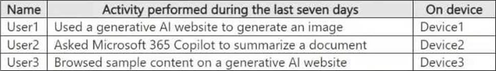User3: Since Device3 has the Microsoft Purview browser extension installed, AI-related activity (browsing sample content on a generative AI website) can be reviewed using Activity explorer in DSPM for AI.