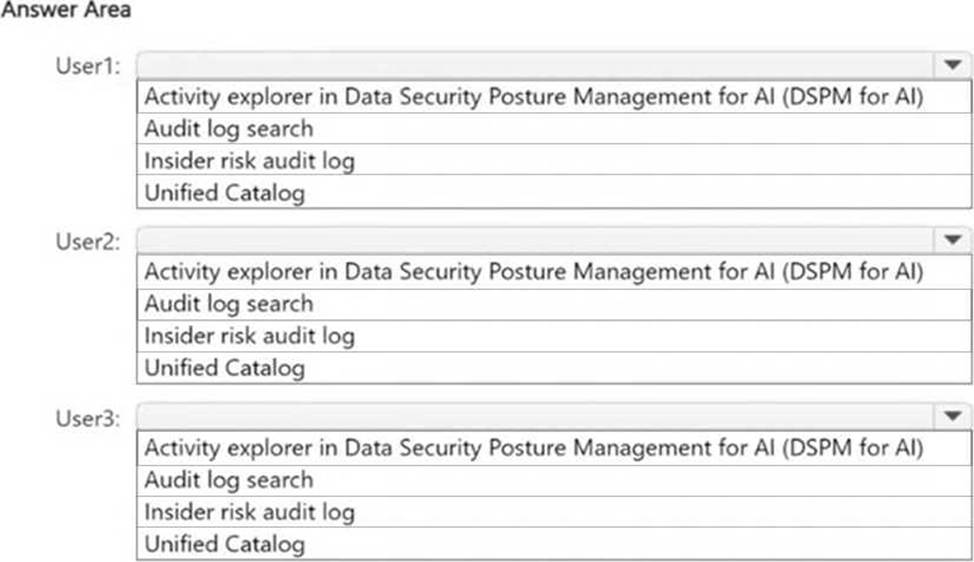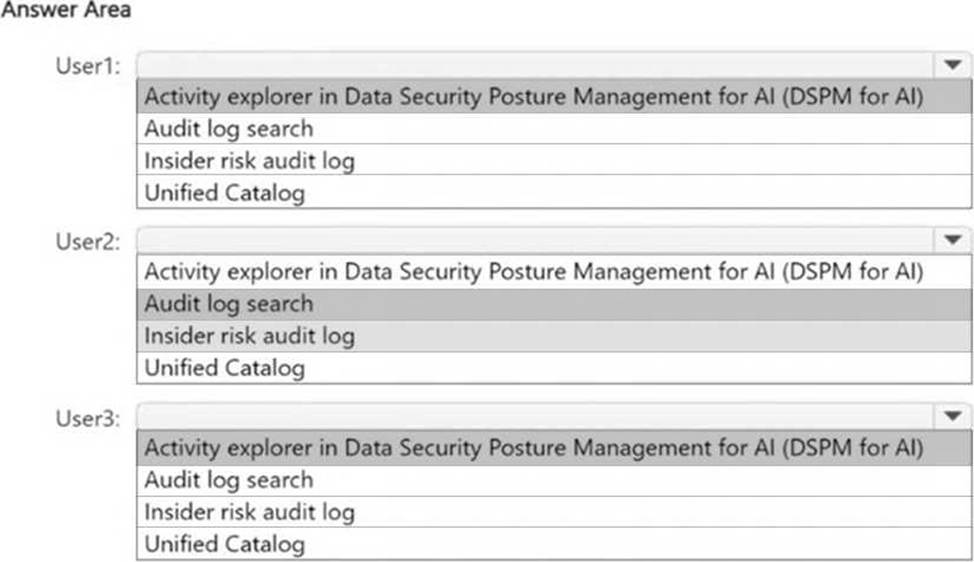 User2: Since Device2 does not have the Microsoft Purview browser extension installed, AI-related activity cannot be tracked in DSPM for AI. Instead, Audit log search should be used to review activity