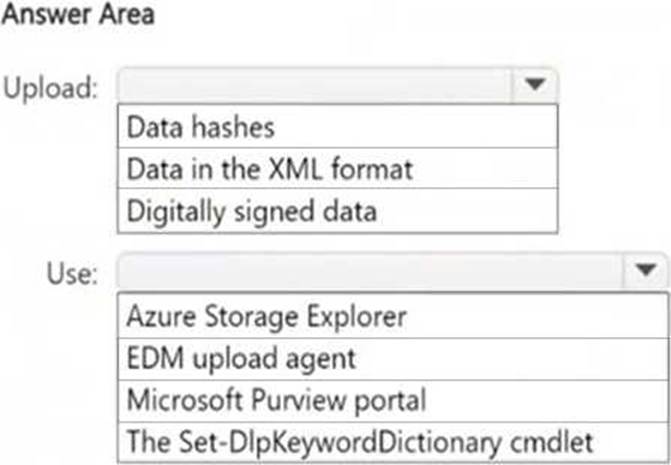 EDM does not store raw data; instead, it requires hashed versions of sensitive data for privacy and security. To upload the hashed data, Microsoft provides the EDM upload agent. This ensures that the data is securely processed and recognized by the EDM service in Microsoft 365.
