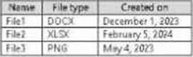 Site1 has a document library that contains the files shown in the following table.