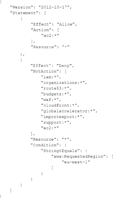 A System Administrator is unable to start an Amazon EC2 instance in the eu-west-1 Region using an IAM role The same System Administrator is able to start an EC2 instance in the eu-west-2 and eu-west-3 Regions. The IAMSystemAdministrator access policy attached to the System Administrator IAM role allows unconditional access to all IAM services and resources within the account