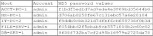 A security administrator recently reset local passwords and the following values were recorded in the system: