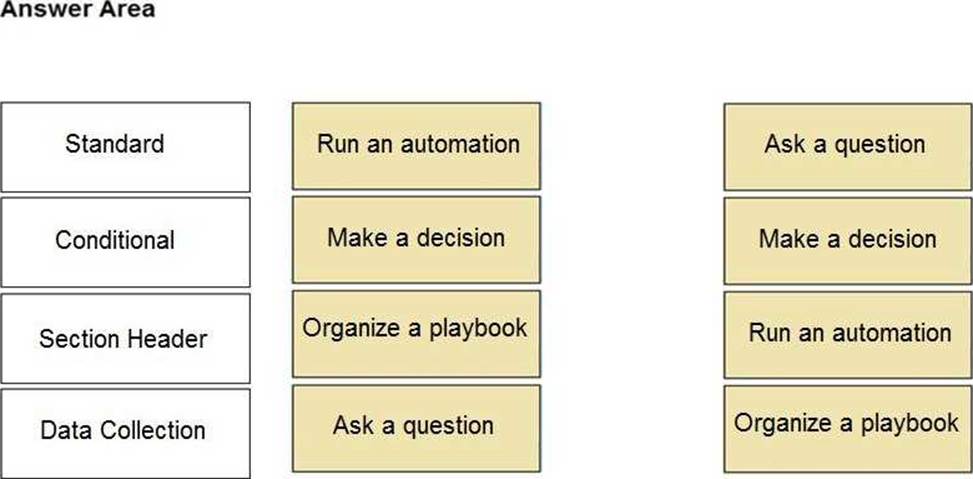 Match the action with the most appropriate playbook task type.
